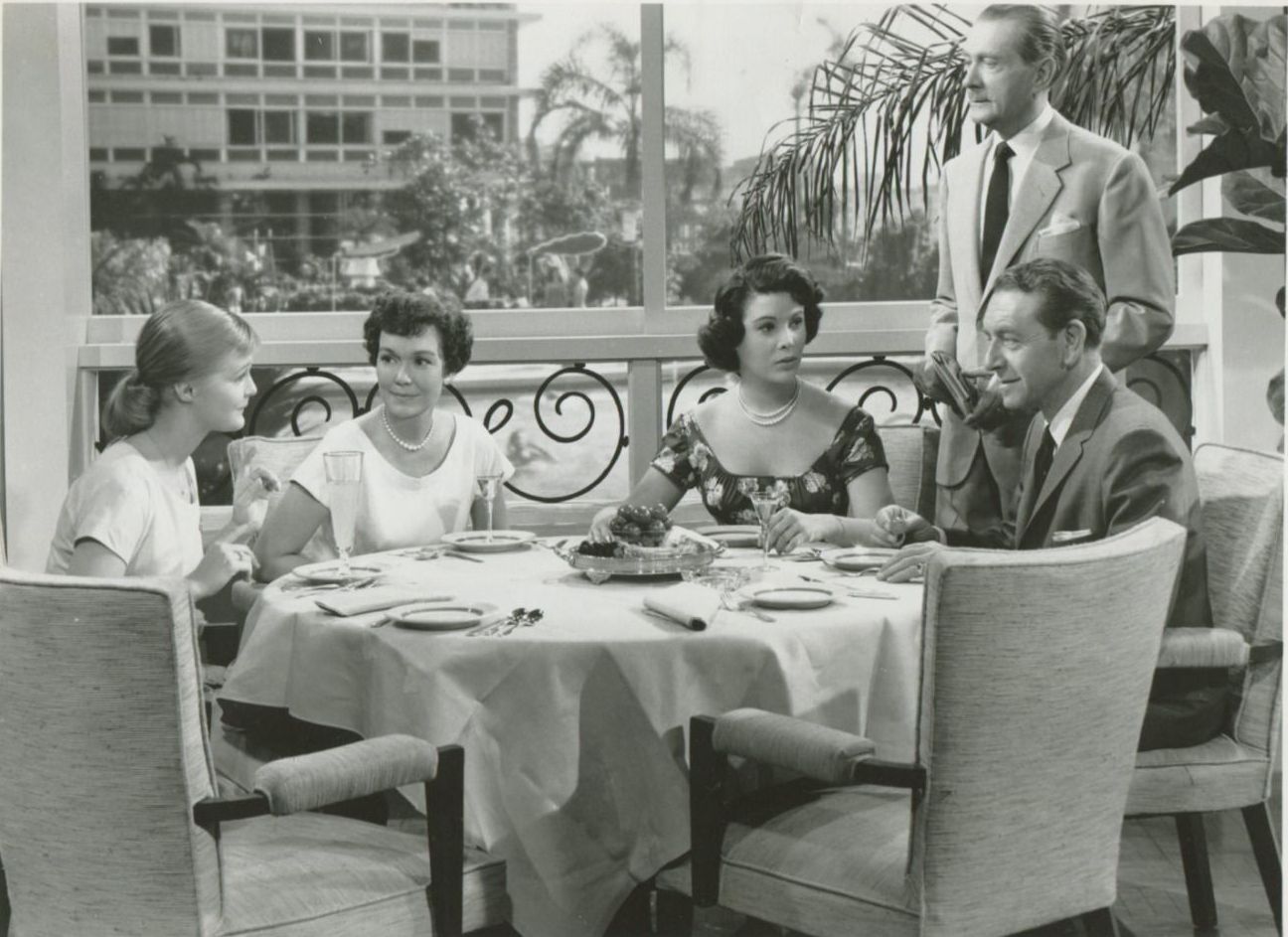 Carol Linley, Jane Wyman, Jill St.John, Paul Henreid & Clifton Webb dine in Rio in 1959.