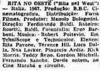 15 July 1968 - but actually 'Rita no West' was shown at Cine Maraba instead... also at Cine Regencia on Rua Augusta and Cine Goiás in Pinheiros... Rita Pavone was competing with 'Bonnie & Clyde' and '2001 a space odyssey'... and dozens of Italian so-called spaghetti-westerns...